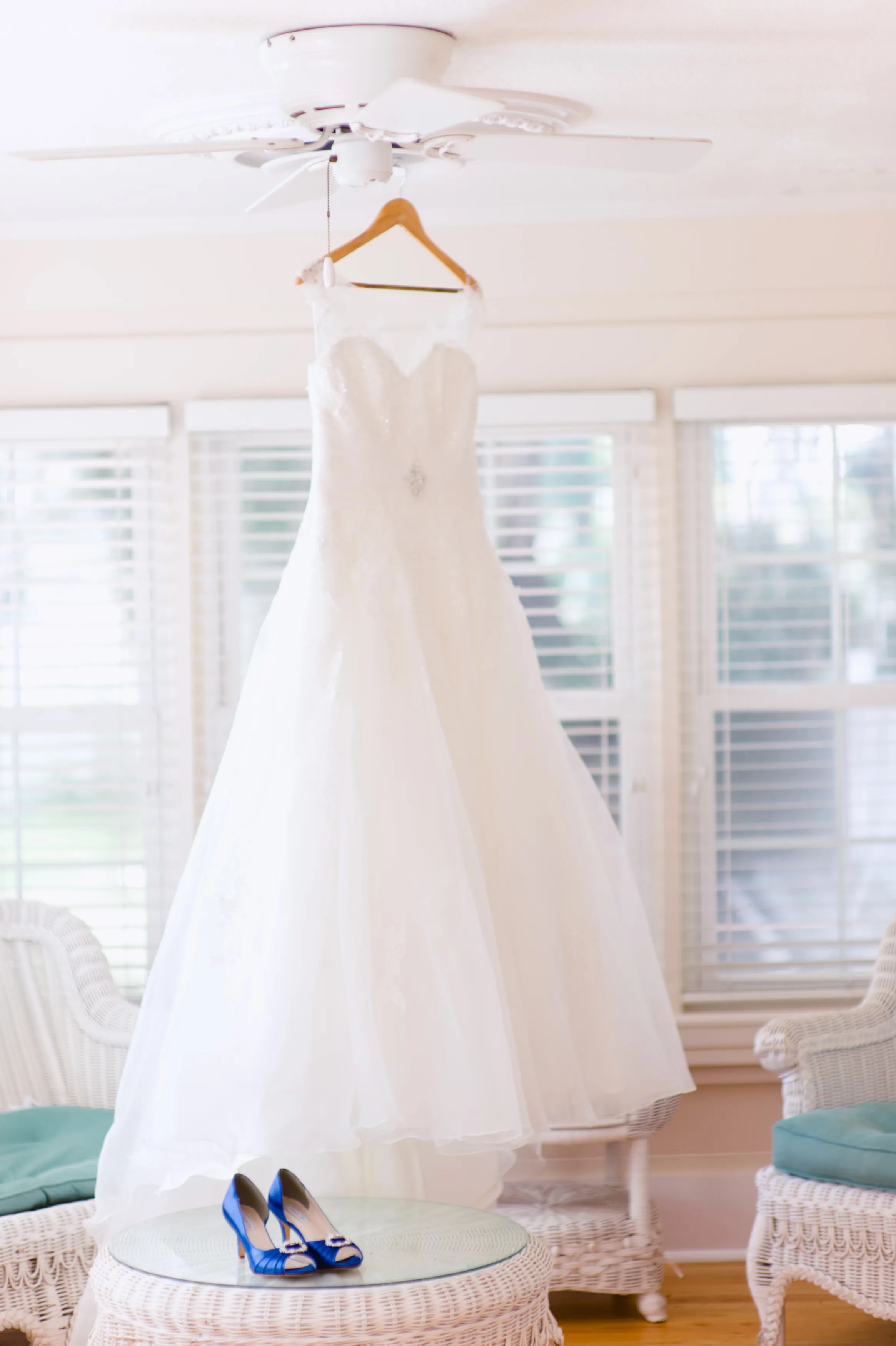 White Wedding Dress Blue Shoes